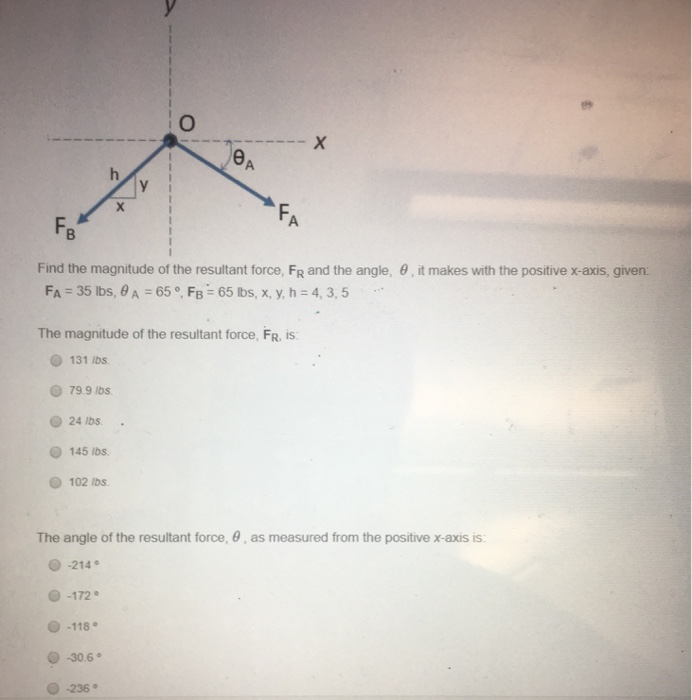 Physics Archive | September 07, 2014 | Chegg.com from d2vlcm61l7u1fs.cloudfront.net Scroll down the page for more examples and solutions on how to obtain the resultant of two forces using vectors. Enter the forces and angles/direction of up to 5 different forces into the calculator. How do we find the resultant force r in this case? The sign of the direction can be chosen arbitrarily, meaning, taking one direction as positive makes the opposite direction negative. When the forces act perpendicular, we use pythagorean theorem to find the. I got 12.82 degrees for the angle. The angle between the forces given the magnitude of their resultant. How do i find the angle between these 2 forces?